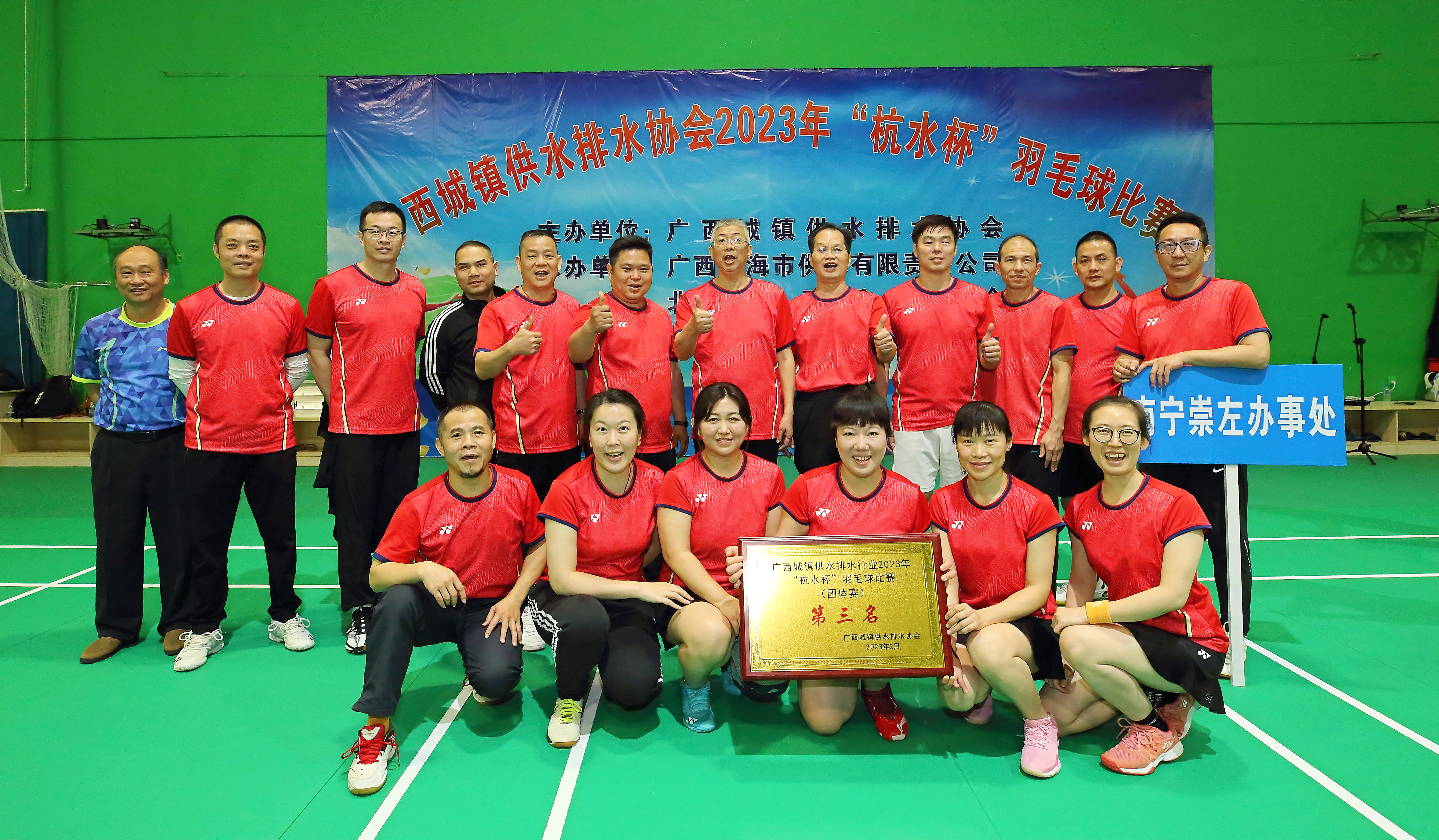 2月22日至24日,廣西城鎮供水排水協會(以下簡稱廣西“水協”)2023年“杭水杯”羽毛球比賽在北海市供水有限責任公司舉行,賽次分團體賽和領導組單項賽,經過三天激烈的角逐,綠城水務公司13名隊員所在辦事處——南寧崇左辦事處最終取得了團體賽第三名的好成績。