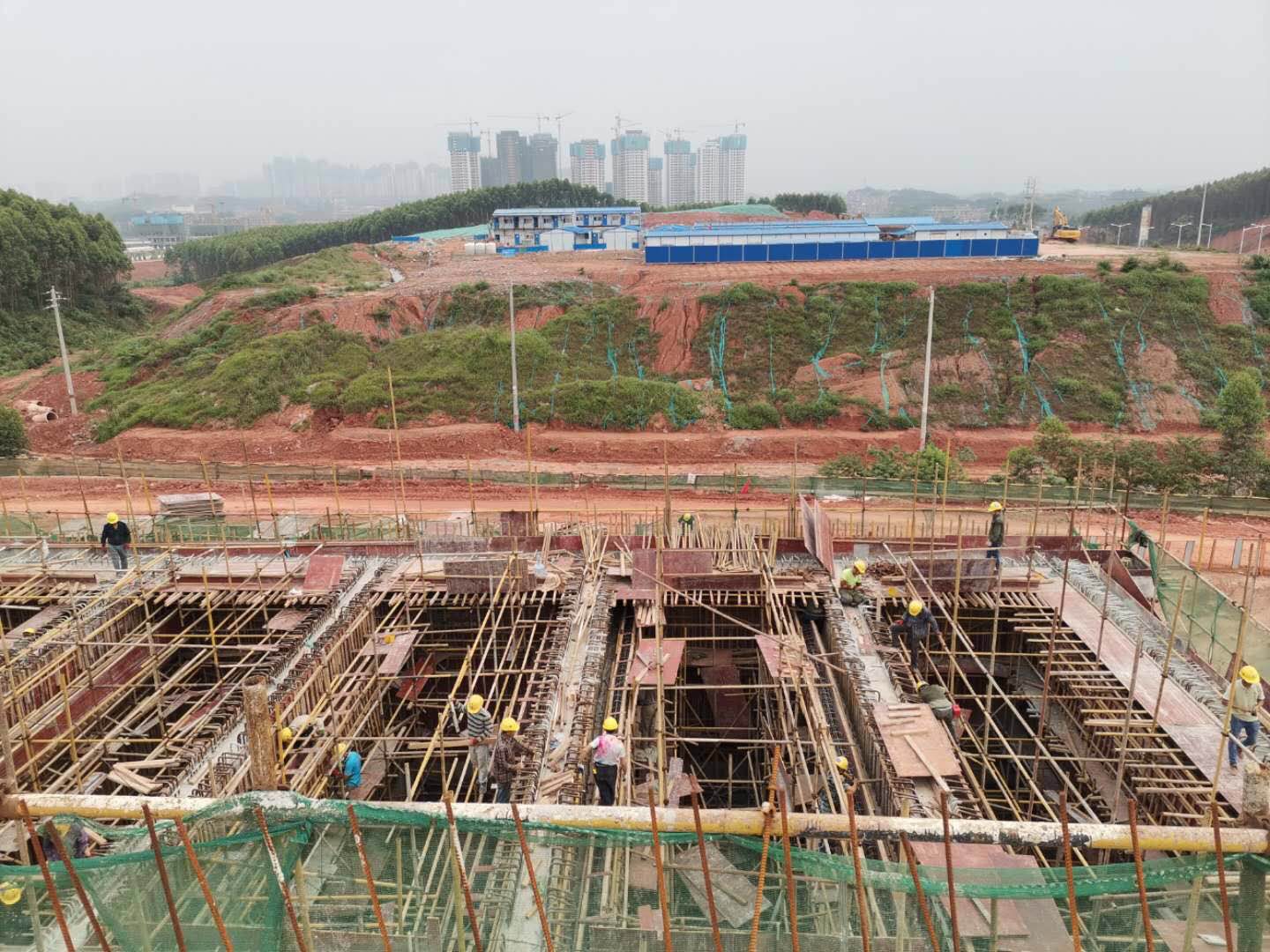 “那平江污水處理廠原始地貌起伏較大,且存在“兩大兩小”四個魚塘,平均高程82,北側37高邊坡,采用逐級放坡+樁板墻的形式進行防護,施工難度”,莫金海說,“項目復工后,在做好疫情防控和施工安全措施的前提下,我們立即組織施工單位全面提速進入施工攻堅,工作面多的時候單日最高有超過300個工人同時施工,全體參建人員克難攻堅,加快推進,截至目前,項目已完成60%以上工程量”。