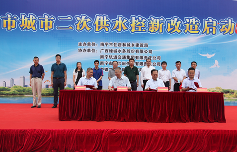 5月21日上午,南寧市城市二次供水控新改造啟動(dòng)儀式在南寧市青秀區(qū)高坡嶺路36號(hào)軌道御瓏壹號(hào)城舉行,廣西綠城水務(wù)股份有限公司(以下簡(jiǎn)稱綠城水務(wù))和南寧市大沙田供水有限責(zé)任公司分別與南寧軌道地產(chǎn)集團(tuán)有限責(zé)任公司、廣西吉麗嘉益投資有限公司簽訂二次供水及一戶一表協(xié)議,標(biāo)志著南寧市城市二次供水控新改造項(xiàng)目正式啟動(dòng),城市二次供水建設(shè)管理將迎來專業(yè)化、規(guī)范化、標(biāo)準(zhǔn)化管理的新時(shí)代,城市供水“最后一公里”水質(zhì)安全將更有保障。