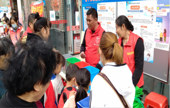 圖為五象水質凈化廠黨支部在居民小區開展垃圾分類宣傳活動