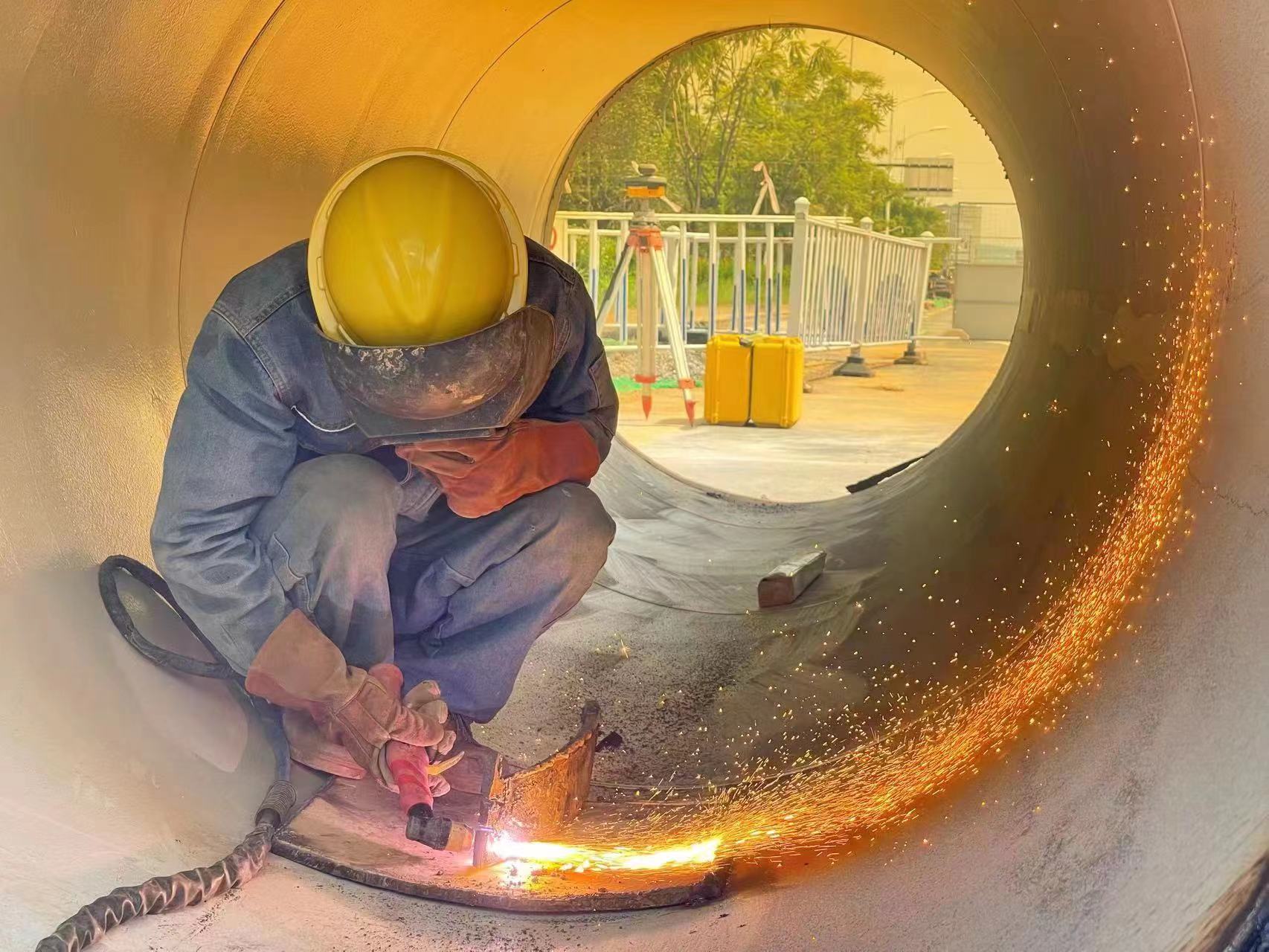 在供水管道施工過程中,焊接是至關重要的環節。焊工的工作效率直接關系著工程的整體進度。為了能讓工程早日造福于民,像歐師傅這樣的焊工們常常需要在高溫下連續工作。歐師傅說,他從事這份工作已經十多年了,早已習慣了這樣的工作狀態,即使覺得很熱很累,但是仍然為自己的工作感到自豪。