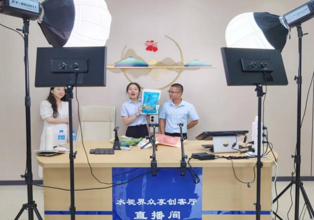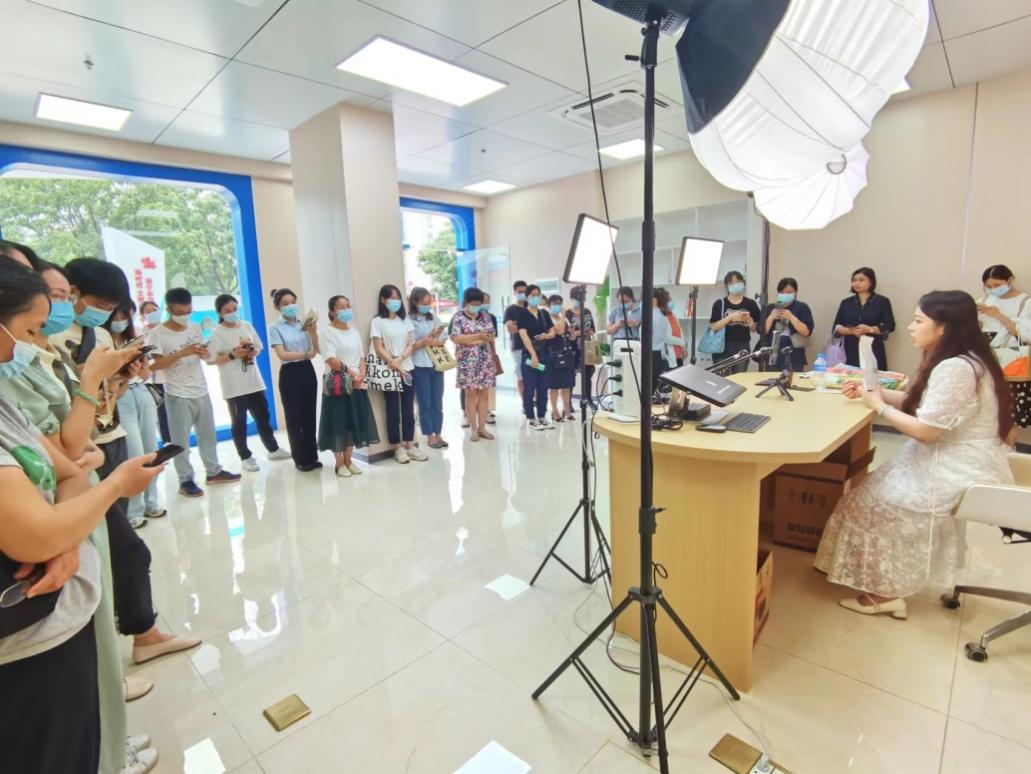 在理論授課結束后,錄音室和直播間體驗開始。在水視界啟明創客廳,姚老師向學員們展示了如何進行扶貧農產品帶貨直播。隨后,在老師的鼓勵下,陸續有學員嘗試做帶貨主播,作為主播的學員通過運用所學的直播技巧以及經過老師的指點,直播漸入佳境。其他學員同步在直播間內觀看直播效果,積極在評論區和主播互動并為主播點贊。