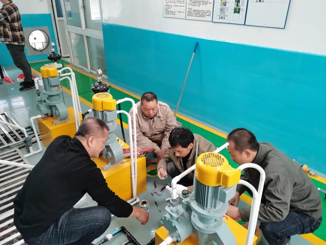 圖為水廠技術(shù)維護(hù)班對(duì)供水設(shè)備進(jìn)行保養(yǎng)維護(hù)