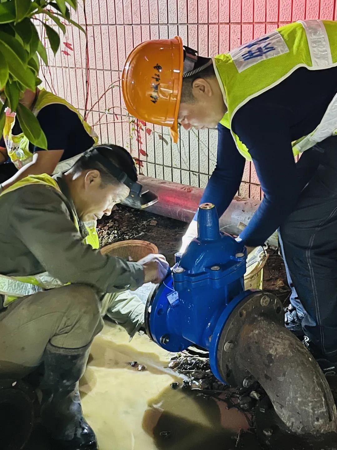 圖為管網(wǎng)管理處“水超人”黨員先鋒隊(duì)在對(duì)大會(huì)場(chǎng)所周邊供水管道開(kāi)展巡查維護(hù)